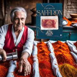 100% natural and pure saffron, known for its strong aroma and untouched by hand, available in air-tight packaging.